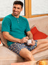 Herenpyjamashort met knoopsluiting in zuiver katoenen jersey en popeline met eendprint I521