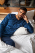 Pyjama Col V imprimé en Jersey de pur coton Indigo et Marine H433