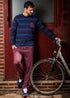 Pyjama homme long Col rond en Jersey Pur Coton rayé Marine H411