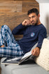 Pyjama Long bi-matière chaud en jersey de coton et flanelle marine