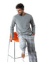 Pyjama Long col boutonné en jersey de coton anthracite chiné et flanelle à carreaux